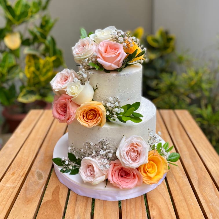 Un pastel donde la suavidad del bizcocho se combina con la belleza natural de flores frescas, haciendo de tu día algo aún más especial. Para diseñar tu torta perfecta, necesitamos: