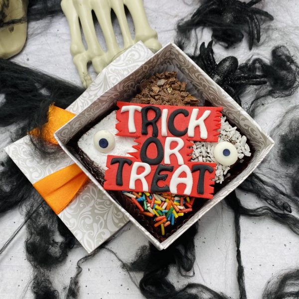 • Mini Brownies Decorados: Deliciosos y esponjosos, cubiertos con exquisitas decoraciones de fondant que capturan la esencia de Halloween.