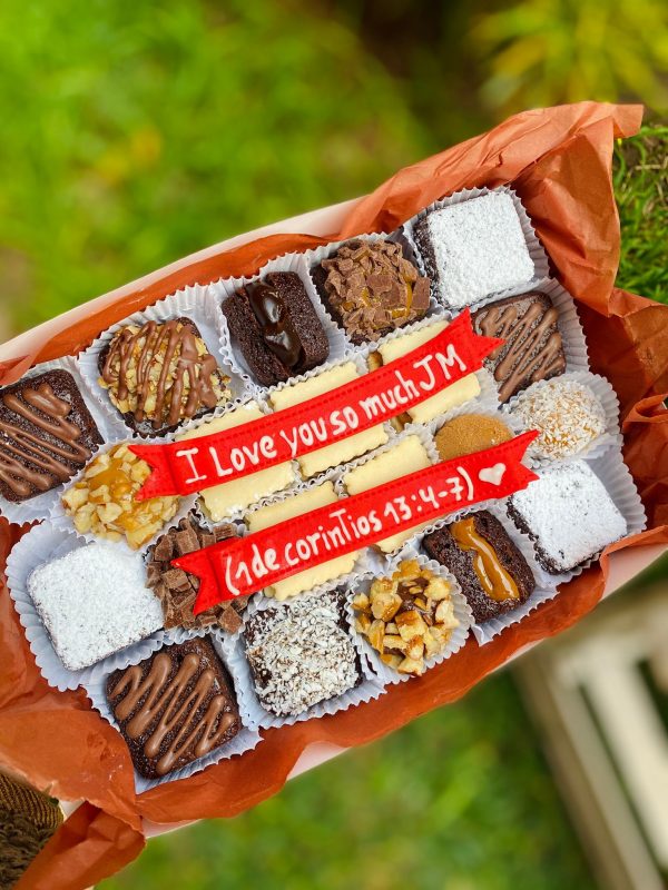 Déjate sorprender con nuestro delicioso Mix Box Frase, una combinación perfecta de 20 postrecitos que te harán sonreír con cada bocado. Este encantador mix incluye: