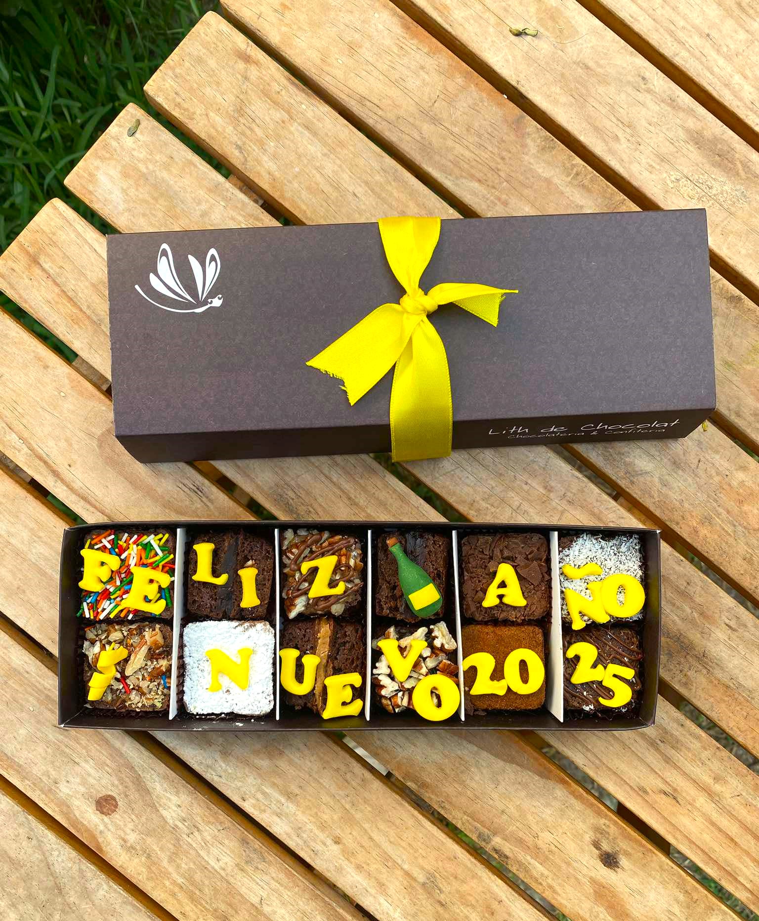 Déjate llevar por el encanto del pasado mientras celebras el futuro. Este pack único de 12 mini brownies es perfecto para iniciar el 2025 con un toque dulce y un estilo inigualable.